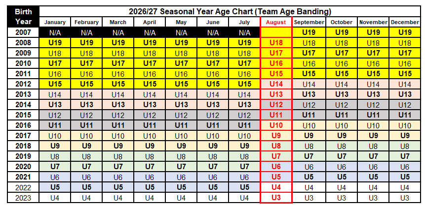 The following age matrix is for the 2025-26 soccer season. Effective September 1, 2025.